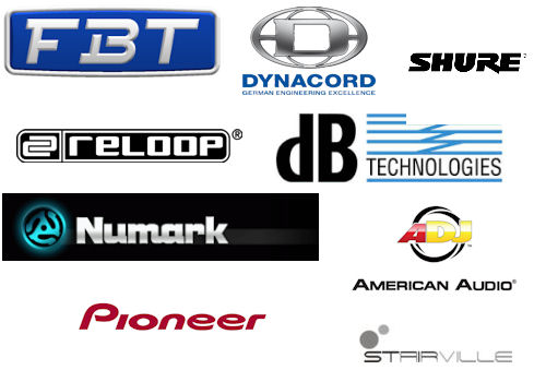 Echipa CarmaMusic foloseste echipamente profesionale de la diferiti productori de referinta in domeniu cum ar fi: FBT, DYNACORD, NUMARK, PIONEER, RELOOP, DB TEHNOLOGIES, SHURE, AMERICAN DJ, STARVILLE, ETC.